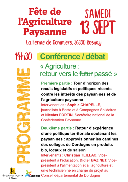 Home > Actualités > Fête de l'Agriculture Paysanne et Conférence-débat "Agriculture : ...